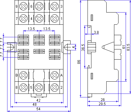 Колодка 38F предназначена для монтажа без пайки трехполюсных реле JQX-38F.