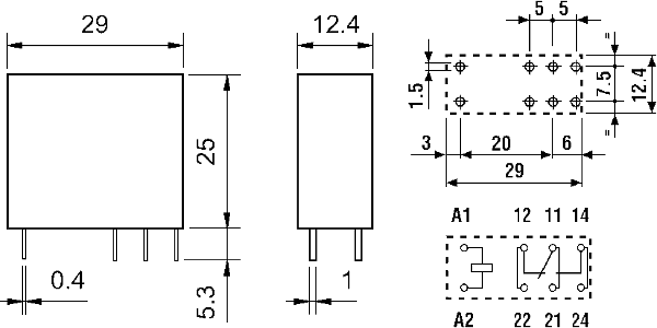 Размеры реле 40.61.9.012.0000