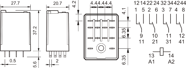 Контактная группа (конфигурация)4 перекидных контакта (4PDT)