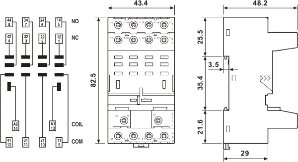 Розетка 96.04 с винтовым зажимом для установки на поверхность или на 35 мм рейку.