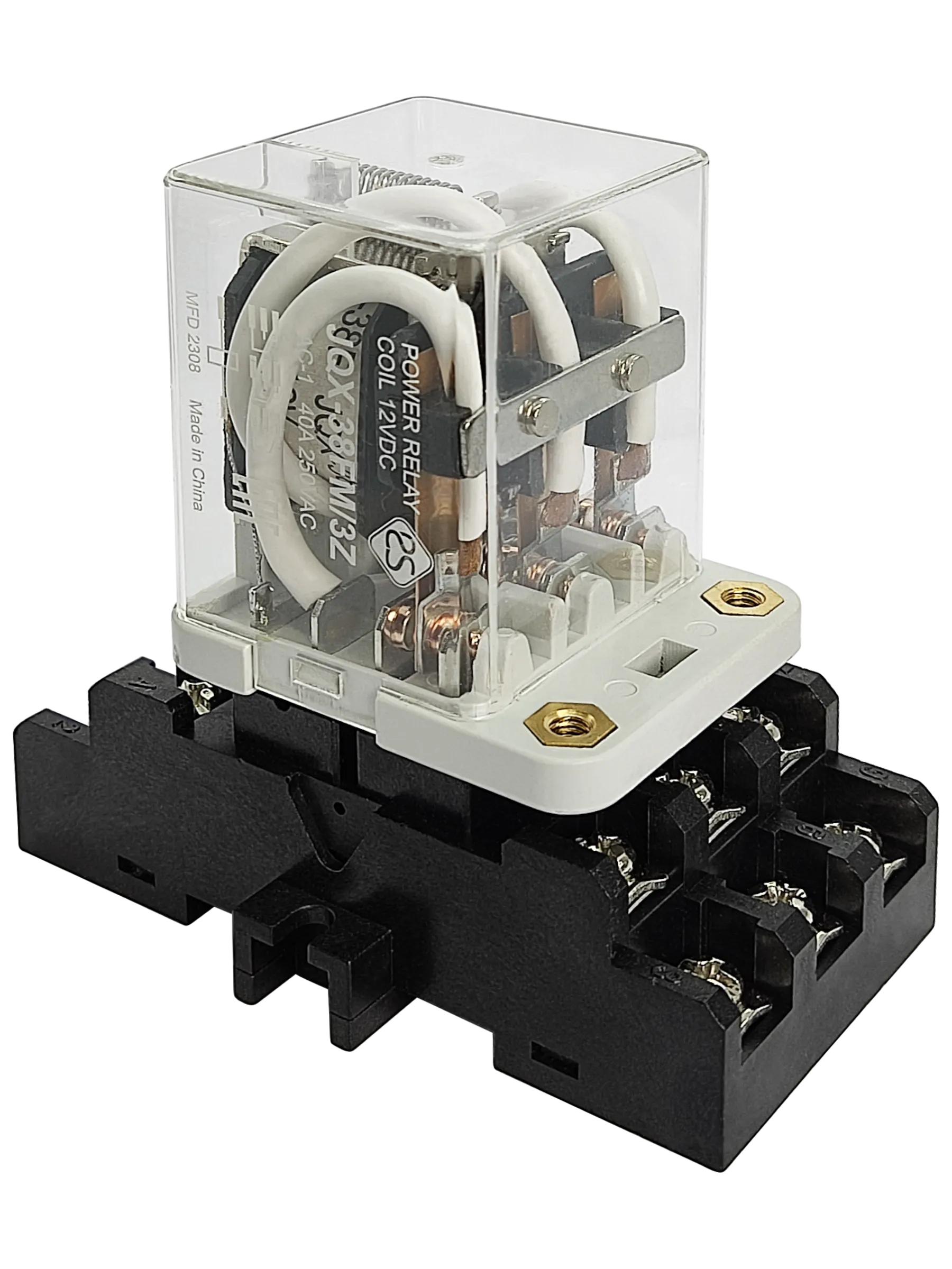 Реле силовое JQX-38FM/3Z 12В DC в сборе с колодкой