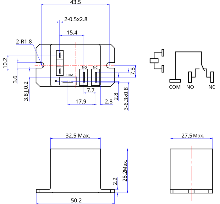 Конфигурация контактов1 перекидной контакт (1SPDT)