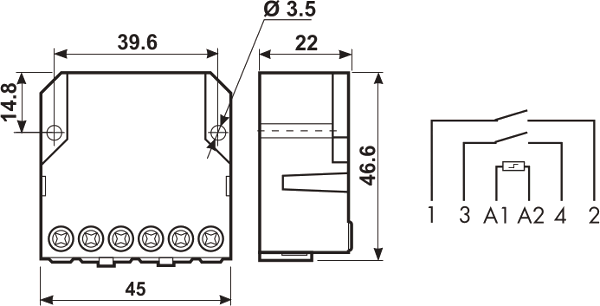Контактная группа (конфигурация)2 фазы переключения 2 NO (DPST-NO)