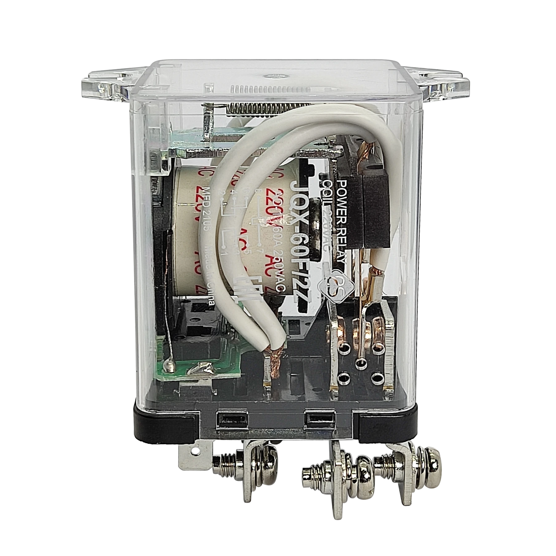 Силовое промежуточное реле JQX-60F/2Z с двумя перекидными контактами. Применяется в системах автоматики для коммутации электрических цепей постоянного и переменного тока.