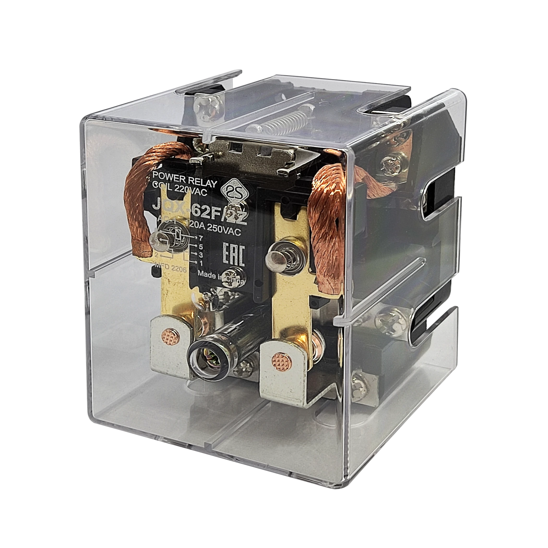 Силовое промежуточное реле JQX-62F/2Z с двумя перекидными контактами. Применяется в системах автоматики для коммутации электрических цепей постоянного и переменного тока.