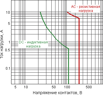 Номинальная нагрузка на контакты10А/250В АС (28В DC)