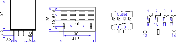 Диэлектрическая прочностьмежду катушкой и контактом: 1500В/1 мин