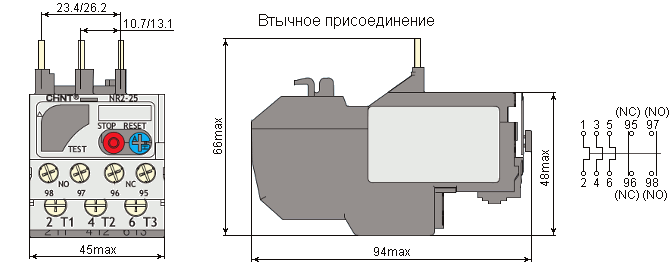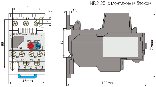 Тепловые защитные реле NR2-25 1-1.6A применяются для защиты электродвигателей мощностью 0,4кВт. Для совместного использования с контакторами NC1-09…NC1-25.