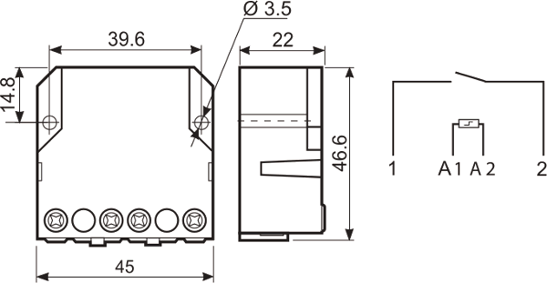 Контактная группа (конфигурация)1 фаза переключения 1 NO (SPST-NO)