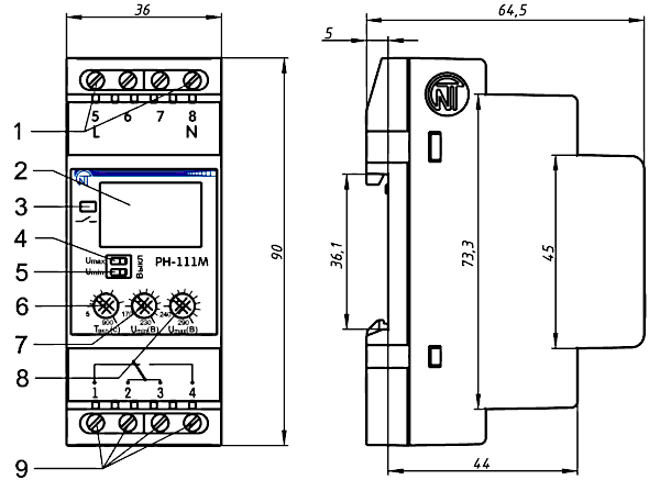 Однофазное реле напряжения РН-111М предназначено для отключения бытовой и промышленной однофазной нагрузки 220 В, 50 Гц при недопустимых колебаниях напряжения в сети с последующим автоматическим включением после восстановления параметров сети.