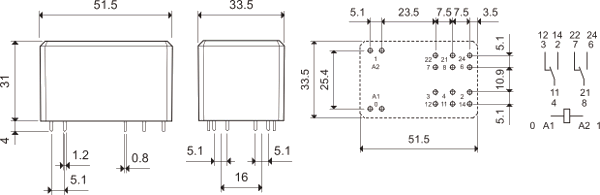 Контактная группа (конфигурация)2 перекидных контакта (DPDT)