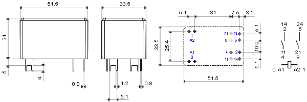 • усиленная изоляция между катушкой и контактами, зазор 8 мм