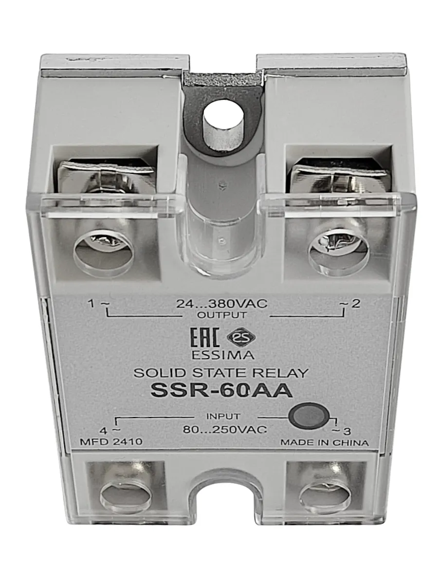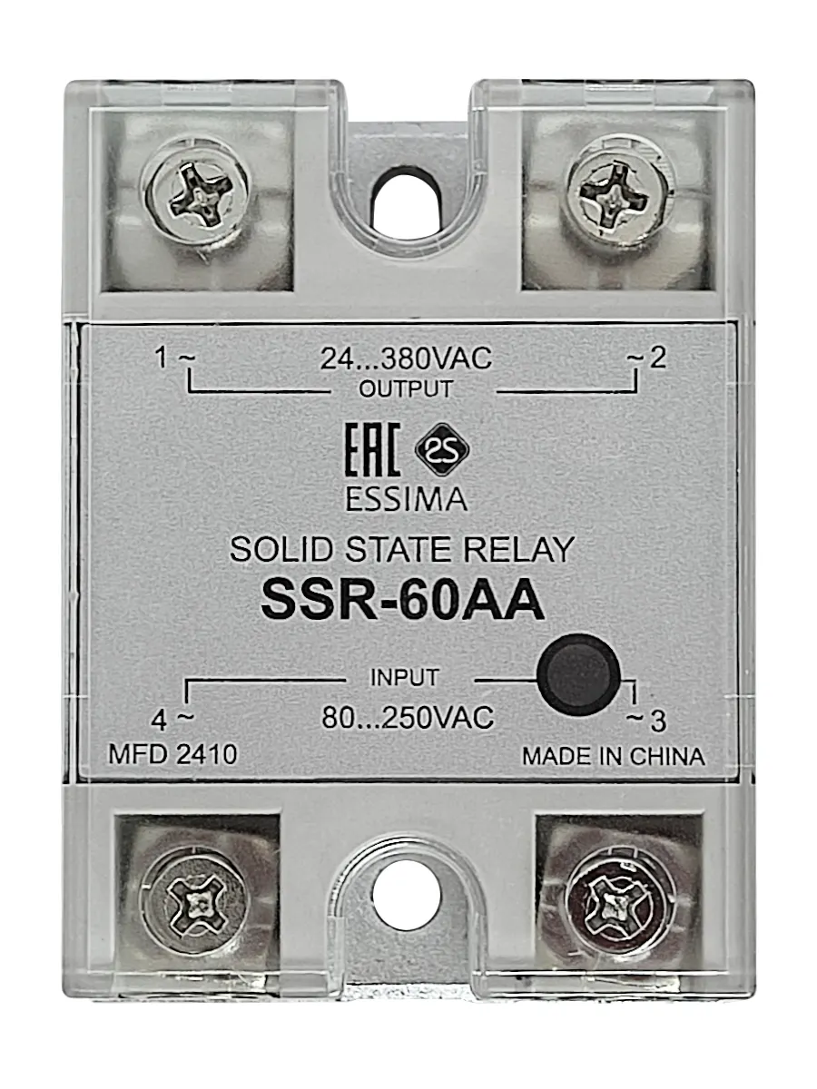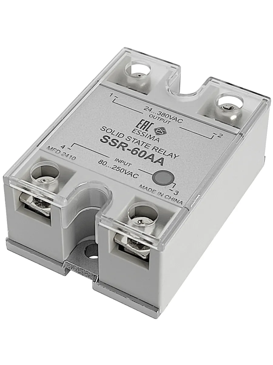 Твердотельное реле SSR-60AA - полупроводниковое устройство для бесконтактной коммутации силовых цепей исполнительных механизмов. Предназначено для проектов, где требуется коммутация переменного тока от 24 до 380 Вольт с силой тока до 60 Ампер.