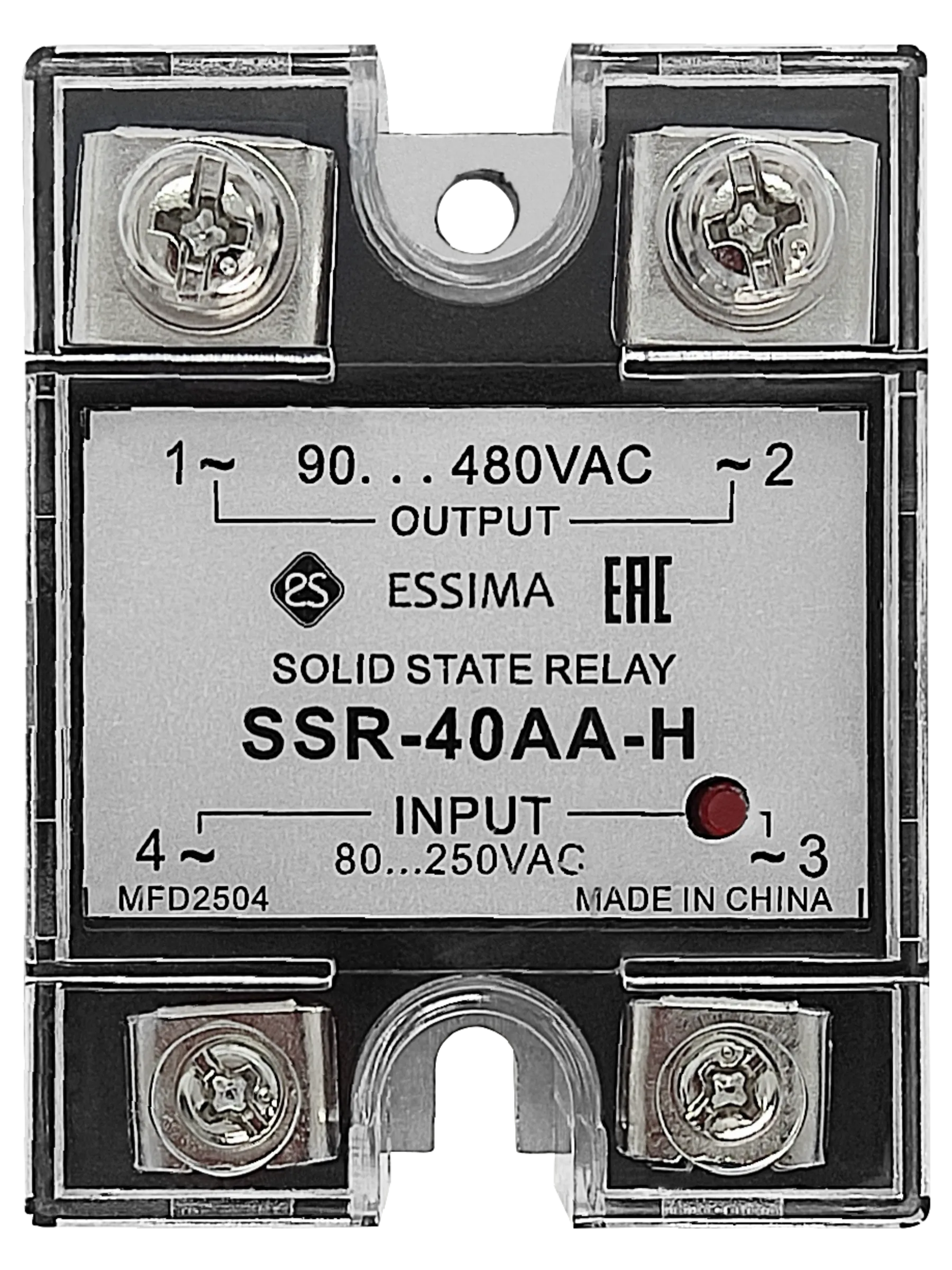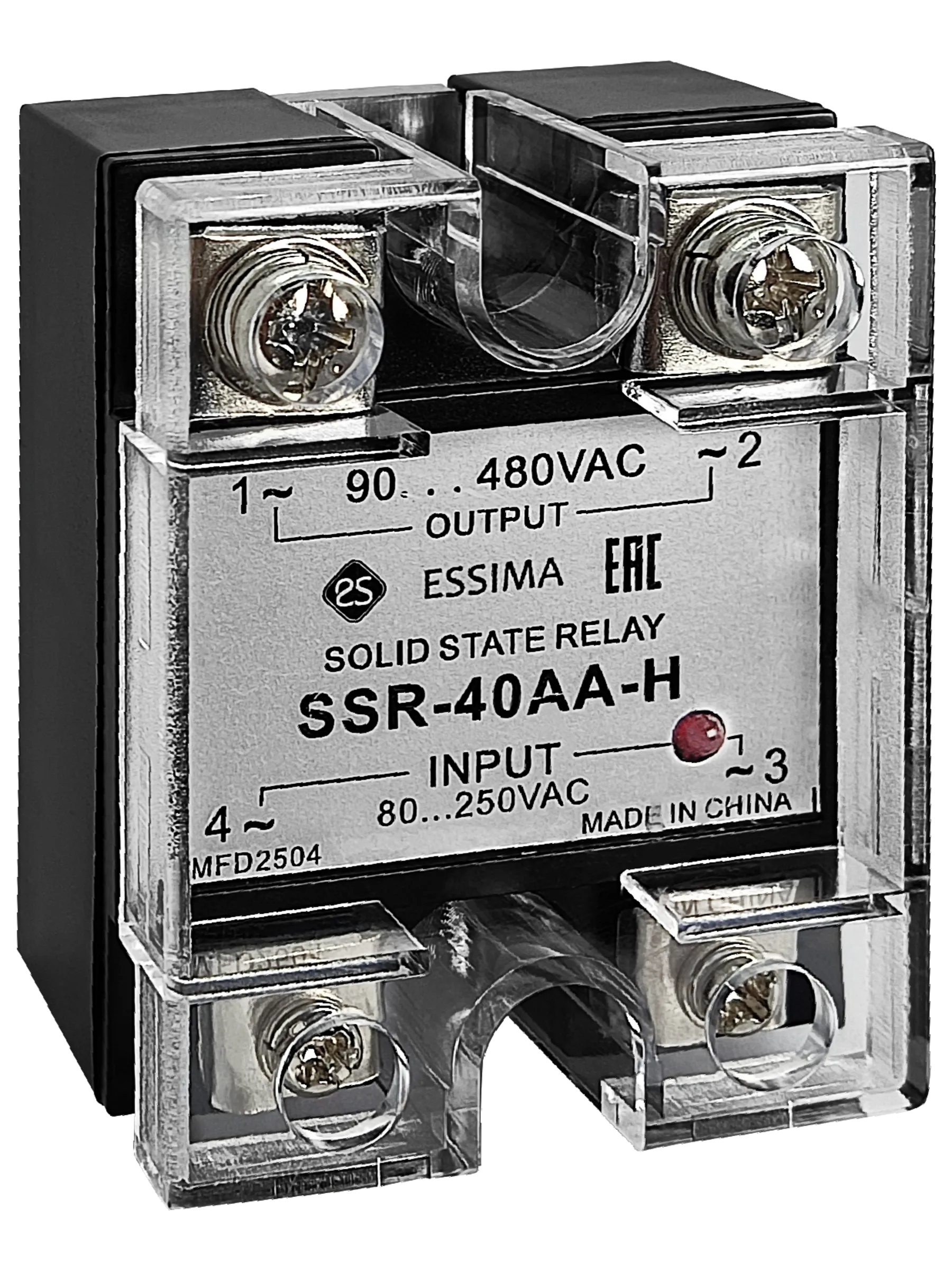 Твердотельное реле SSR-40АA-H - это современное полупроводниковое устройство, которое предназначено для бесконтактной коммутации силовых цепей исполнительных механизмов, преимущественно нагревательных элементов (ТЭН), осветительных приборов и маломощных электродвигателей.