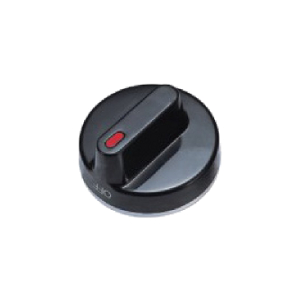 Пластиковая рукоятка для электрооборудования с графическими символами, нанесенными по диаметру ручки и тонким алюминиевым кольцом в основании ручки.