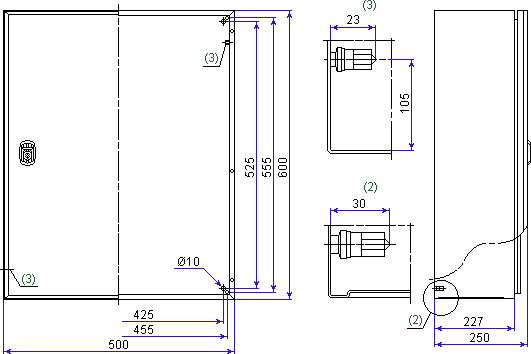 Установка (внутренняя)высокая прочность металлической конструкции шкафа обеспечивает возможность его установки внутри производственных помещений, где имеется вероятность ударных нагрузок.