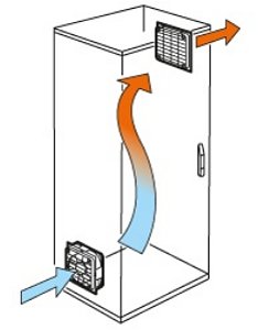 Система климат-контроля термошкафа управляется регулируемыми биметаллическими термостатами. В целях повышения надежности шкафов, для управление отопителями и вентиляторами применяются задублированные термостаты, то есть два одинаковых термостата, которые соединены последовательно.