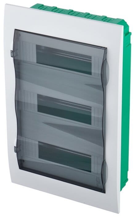 Встраиваемый щит с прозрачной дверцей. 3 ряда для установки модульных элементов.