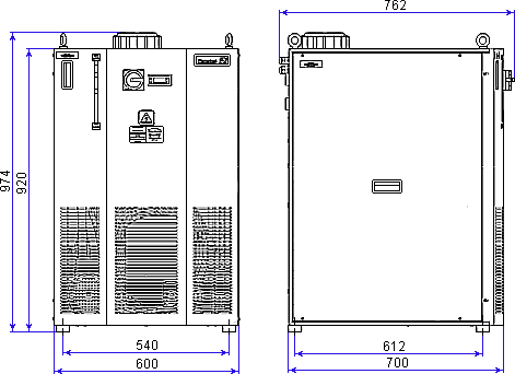 Выполнен в стальном корпусе с порошковым покрытием. Имеется возможность монтажа на крыше шкафа. Чиллер оборудован программируемым контроллером, что позволяет создать малый гистерезис температуры хладагента. Степень защиты корпуса IP54.