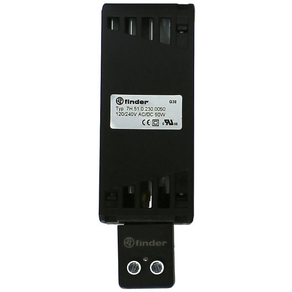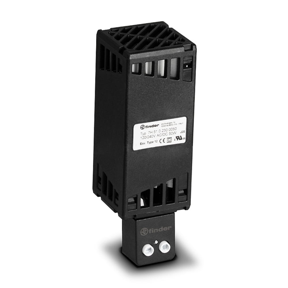 PTC нагреватель 7H.51.0.230.0050 может устанавливаться в различного рода электрооборудование для поддержания температуры выше установленного минимума и предотвращения образования конденсата. Благодаря функции саморегулирования PTC элемента устройство надежно защищено от перегрева. Для регулирования температуры нагрева в пределах установленного диапазона необходимо использовать термостат.