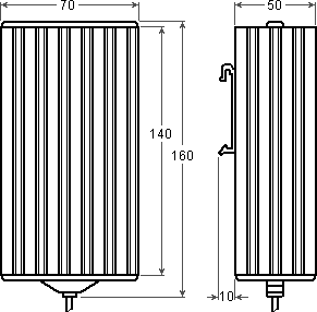 PTC нагреватель (позисторный нагреватель) DMK 04007 мощностью 100Вт предназначен для установки на DIN рейку. Типичное применение - предотвращение образования конденсата и предотвращение понижения температуры ниже указанного минимума. В этом случае нагреватель должен быть последовательно соединен с термостатом.
