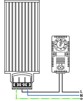 Для лучшего распределения тепла, рекомендуется устанавливать нагреватели вертикально, с подводом напряжения снизу. Минимальное расстояние до других компонентов в распределительном шкафу - 50мм. Рекомендуемое место установки в распределительном шкафу - снизу.
