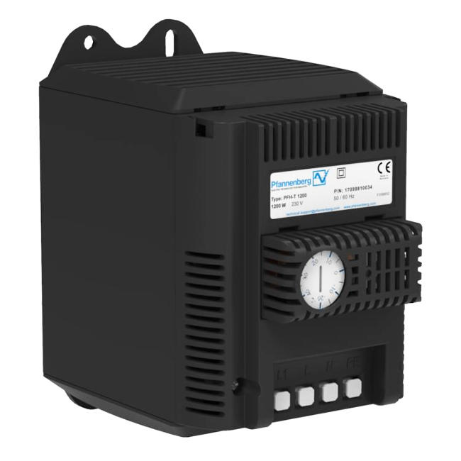 Компактный PTC нагреватель с вентилятором и встроенным термостатом PFH-T 500 на напряжение 230В~ мощностью нагрева 500Вт выполнен в пластиковом корпусе для безопасной работы. Монтируется на стену или DIN рейку. Имеет высокий коэффициент мощности по отношению к размеру.