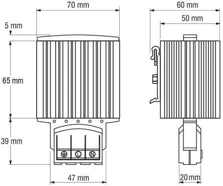 Нагреватели предназначены для длительного режима работы. Конструкция алюминиевого профиля обеспечивает естественную конвекцию воздуха, благодаря чему достигается равномерное распределение температуры. Подключение посредством нажимных клеммников упрощает монтаж и экономит время.