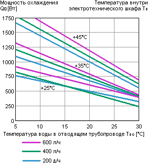 Воздушно-водяной теплогобменник PWS 7102 - графическая характеристика мощности охлаждения