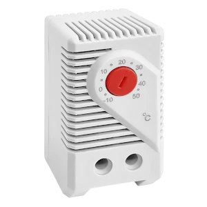 ООО "Скат технолоджи" предлагает надежные термостаты с креплением на DIN рейку для шкафов управления. Регулируемые термостаты используются для коммутации нагревательного и охлаждающего оборудования в электротехнических шкафах. Обычно в шкафу устанавливаются два терморегулятора, один из которых реагирует на превышение допустимой температуры и включает охлаждение (напр. вентилятор, кондиционер), а другой - на понижение температурного режима до установленного минимума и активирует нагреватель. Первый имеет нормально-открытый контакт (NO) и устанавливается в верхней части шкафа, другой - нормально-закрытый (NC) и монтируется в нижнюю часть. Кроме того, есть разновидности сдвоенных термостатов (NO/NC) и термостатов с переключающим контактом.