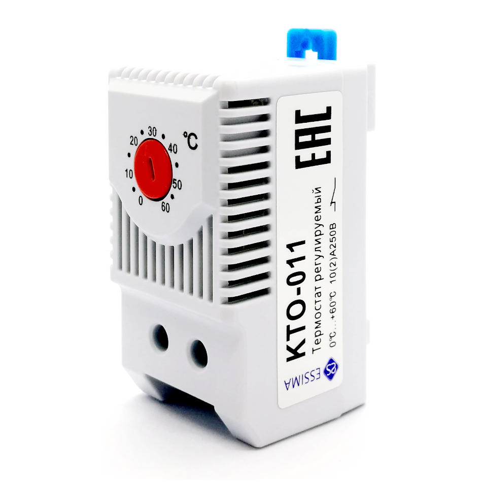 Термостат для шкафа автоматики KTO-011 с диапазоном регулирования от 0°C до +60°C предназначен для размыкания силовой электрической цепи при заданной температуре. Номинальная нагрузка на контакты: 10(2)A/250В АС. Устанавливается на 35 мм DIN рейку.