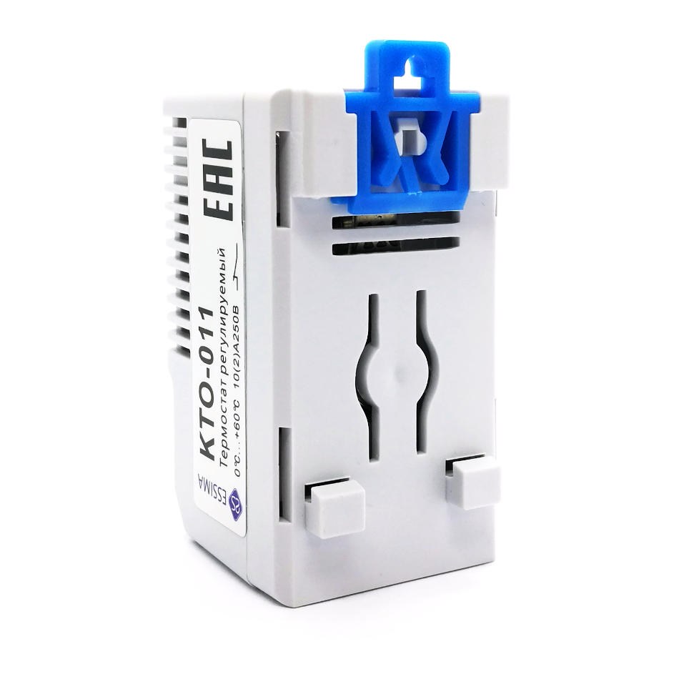 Терморегулятор регистрирует температуру в распределительном шкафу. Должен быть размещен в верхней части распределительного шкафа на максимальном расстоянии от нагревательного прибора или других источников тепла. Устанавливается на стандартной 35мм DIN рейке защелкиванием. Вентиляционные щели терморегулятора не должны быть закрыты.