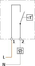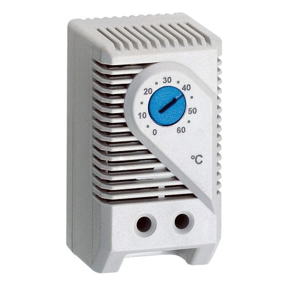 Терморегулятор регистрирует температуру в распределительном шкафу. Должен быть размещен в верхней части распределительного шкафа на максимальном расстоянии от нагревательного прибора или других источников тепла. Устанавливается на стандартной 35мм DIN рейке защелкиванием. Вентиляционные щели терморегулятора не должны быть закрыты.При настройке терморегулятора необходимо учитывать погрешность термостата. Пример: требуемая максимальная внутренняя температура в распределительном шкафу +45°C. Максимальная погрешность термостата +4°C, таким образом необходимо установить на рукоятке термостата 41°C (45°C-4°C).