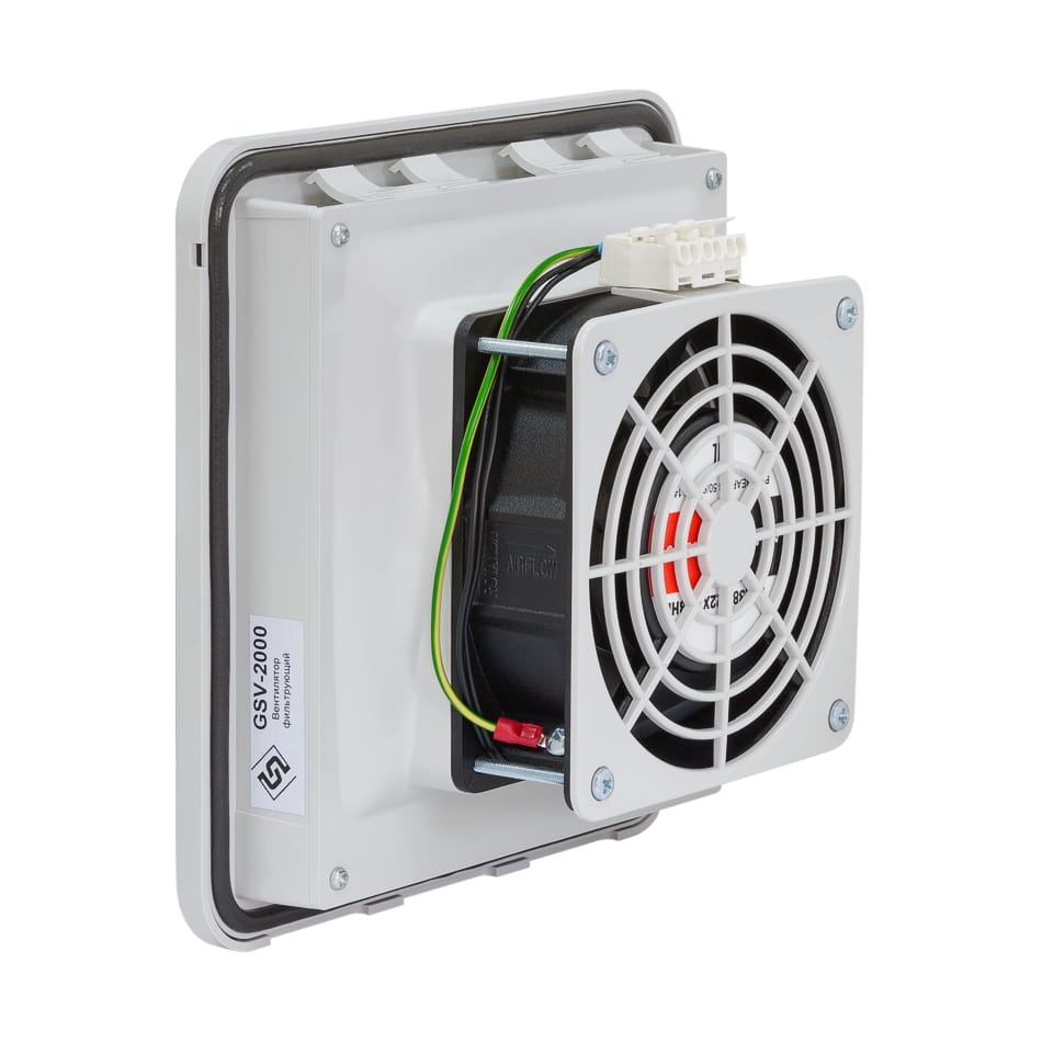 Фильтрующий вентилятор GSV-2000 предназначен для снижения температуры внутри устройств путем подачи очищенного воздуха из внешней среды. Вентилятор используется совместно с выходным фильтром GSF.