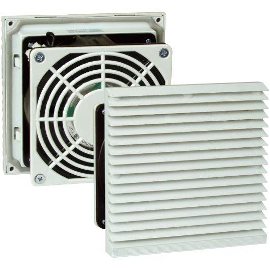 Вытяжной вентилятор с фильтром STFD149A024 RAL7035 на напряжение питания 24В DC. Имеет встроенное уплотнение из резины. Требуемый вырез для монтажа: 122х122мм. Подключение проводами длиной 300м. Температура эксплуатации -10°C…+55°C.