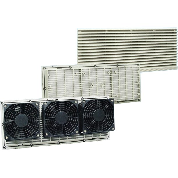 Решетка вентиляционная STF420 может устанавливаться с тремя вентиляторами типоразмера 120x120x38, либо с двумя вентиляторами типоразмера 172x162x51 (вентиляторы в комплект не входят)