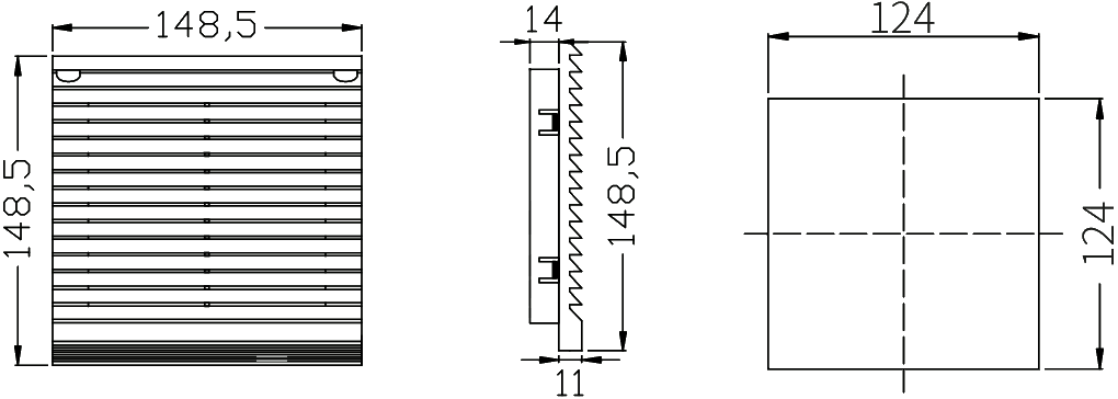 Требуемый вырез для монтажа124х124 мм