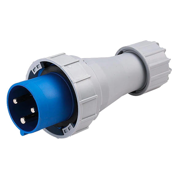 Силовые вилки 033-6 2P+E 63А 230В предназначены для использования мобильным и стационарным электрооборудованием с подключением к однофазным электросетям.