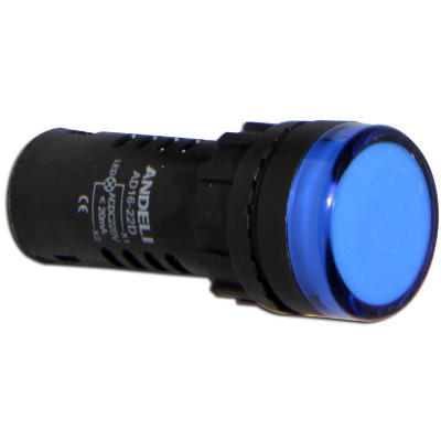 Светодиодный индикатор AD16-22D синего цвета предназначен для индикации состояния электрических цепей. Номинальное напряжение 220В АС. Максимальный ток через светодиод 20мА.