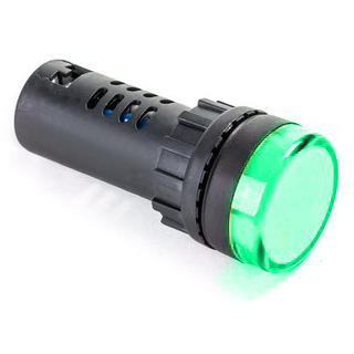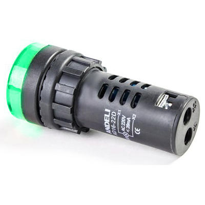 Светодиодный индикатор AD16-22D зеленого цвета предназначен для индикации состояния электрических цепей. Номинальное напряжение 220В АС. Максимальный ток через светодиод 20мА.