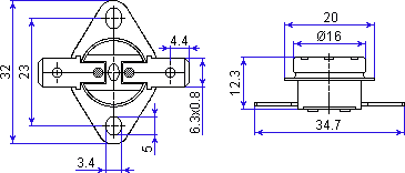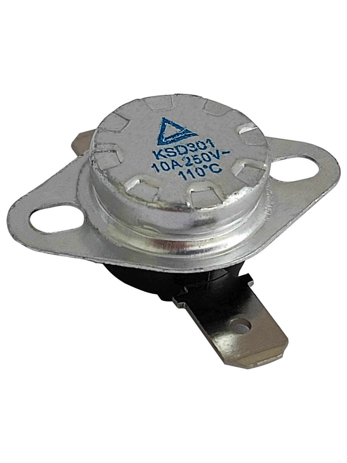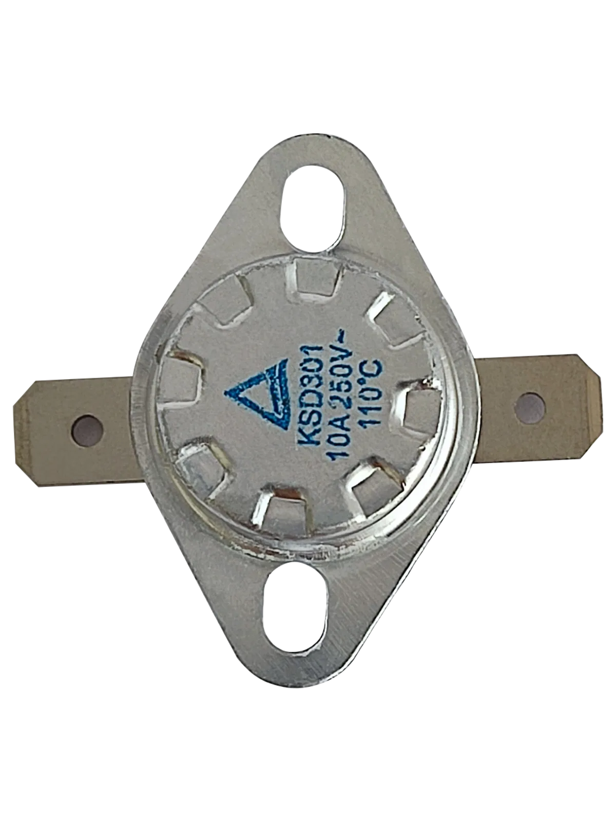 Биметаллический термостат KSD301A A314 с нормально закрытым контактом предназначен для размыкания электрической цепи при достижении температуры 110°С. Возврат в исходное состояние происходит при снижении температуры до 95°C.