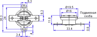 Биметаллический термостат KSD301A070UF1B NC 70°C 16A 250V