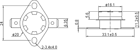 Самовосстанавливающийся биметаллический термостат KSD301A090BF1B - электромеханическое изделие, предназначенное для размыкания силовой электрической цепи при достижении температуры в 90°С. Термостат не имеет собственного электропотребления.