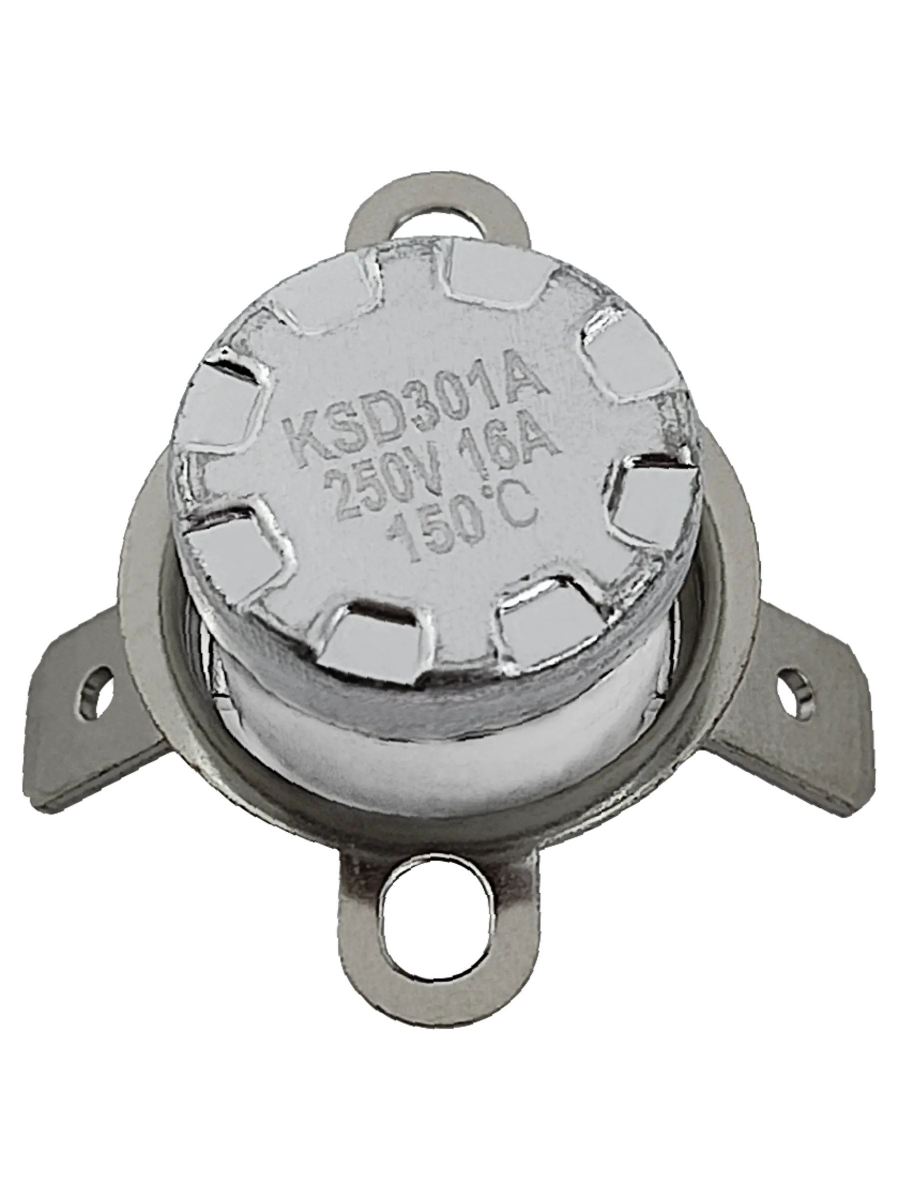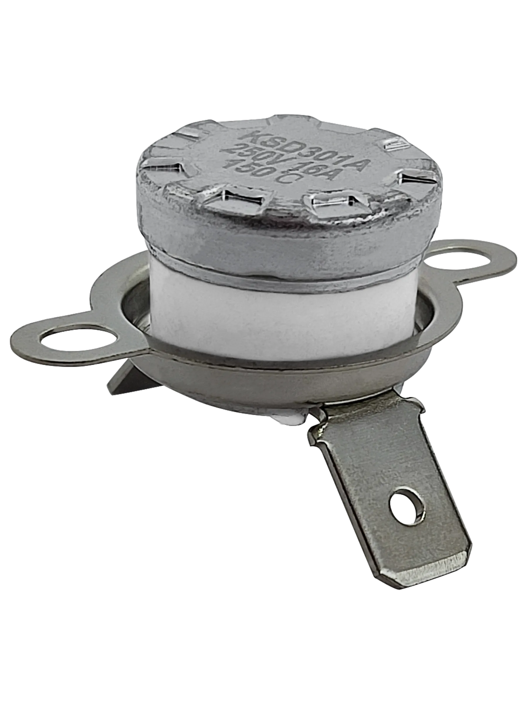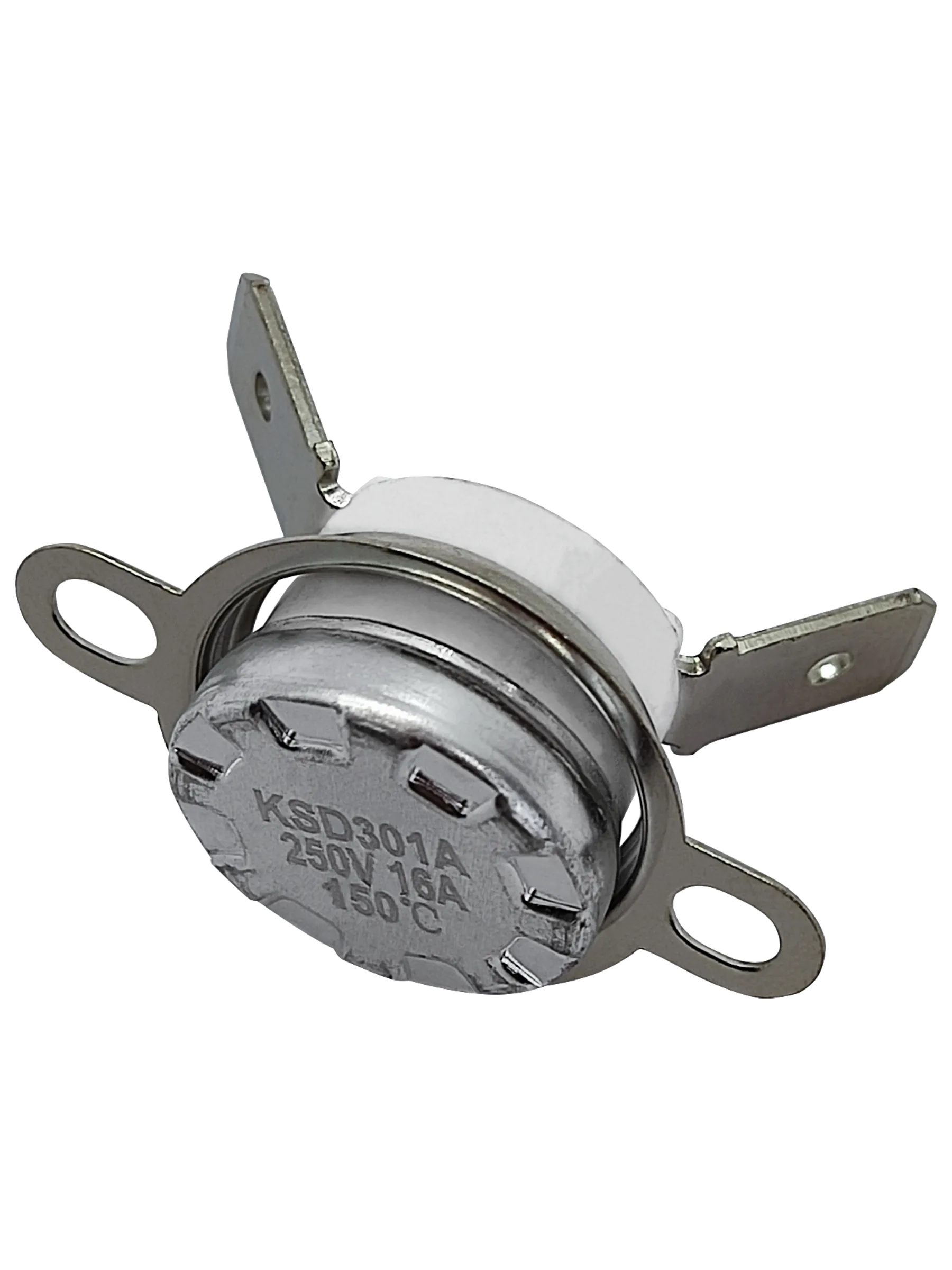 Дисковый биметаллический термостат KSD301A150UT1C - электромеханическое изделие, предназначенное для размыкания силовой электрической цепи при достижении температуры в 150°С. Термостат не имеет собственного электропотребления.