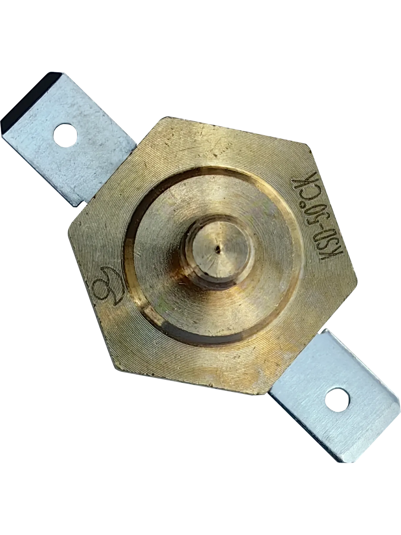 Биметаллический термостат KSD301B050HF1B − это электромеханическое изделие, предназначенное для замыкания силовой электрической цепи при достижении температуры 50°С. Термостат не имеет собственного энергопотребления.