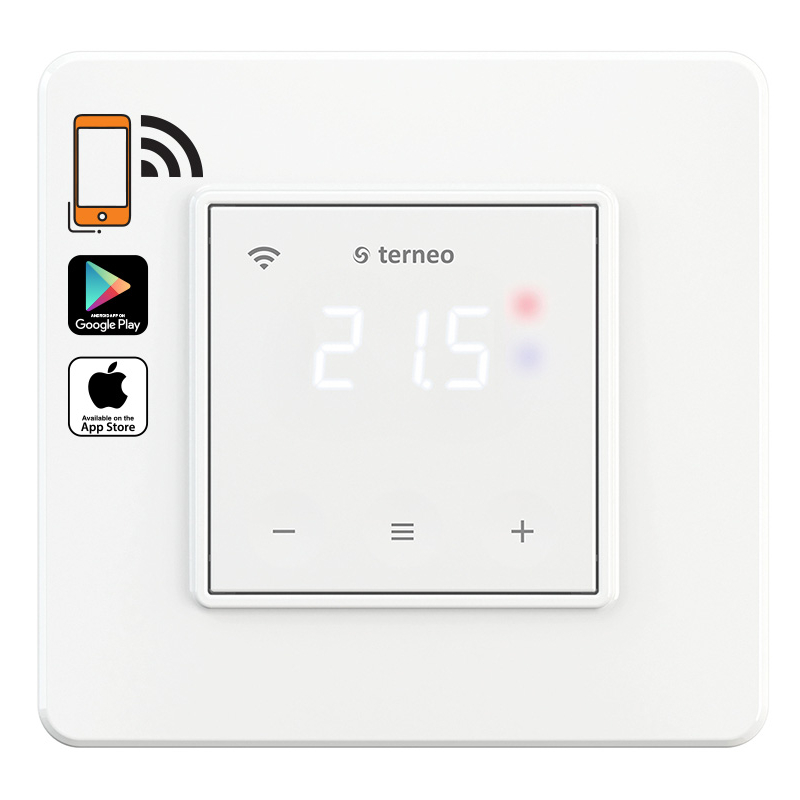 Wi-Fi терморегулятор terneo sx управляется со смартфона через мобильное приложение или с компьютера через персональный аккаунт на сайте производителя. Поддерживать температуру в помещении можно по индивидуальному графику, что позволяет достигать максимума экономии.
