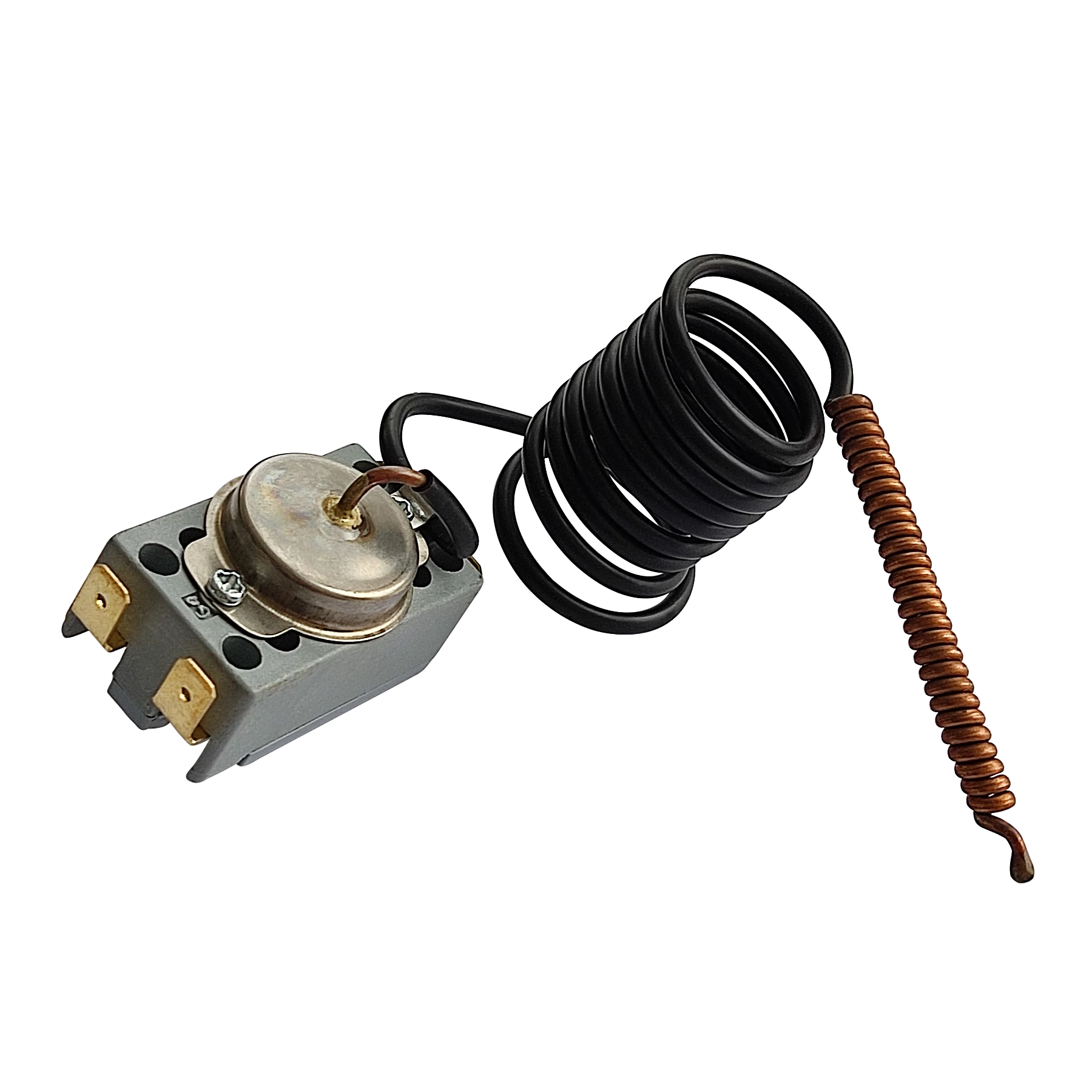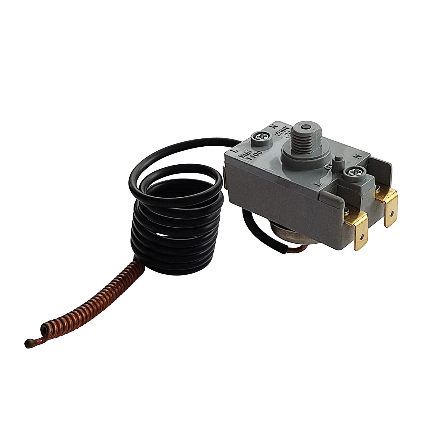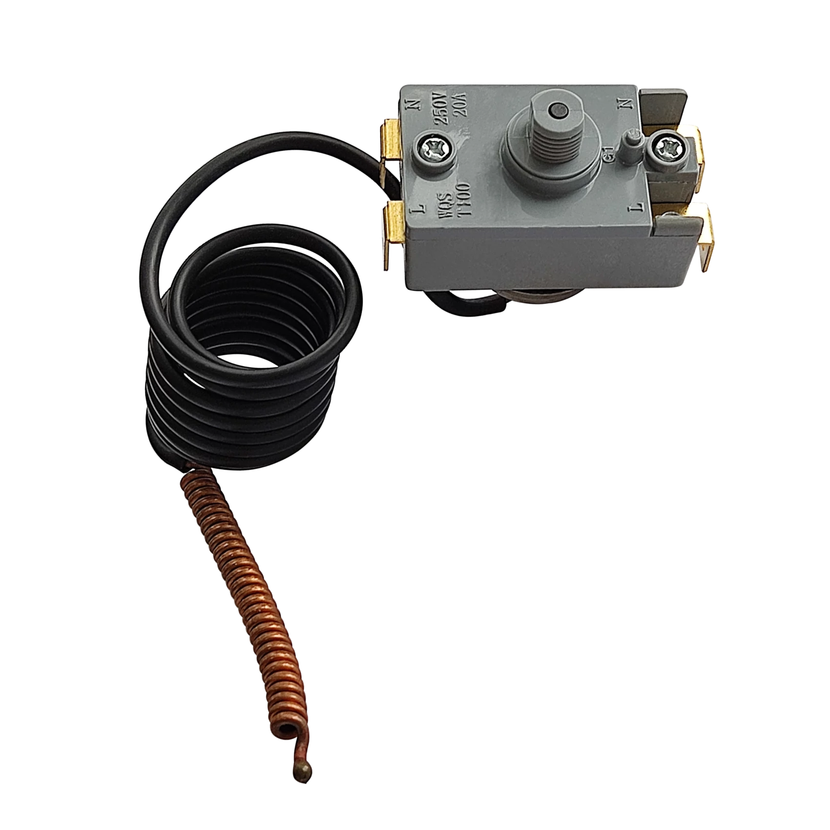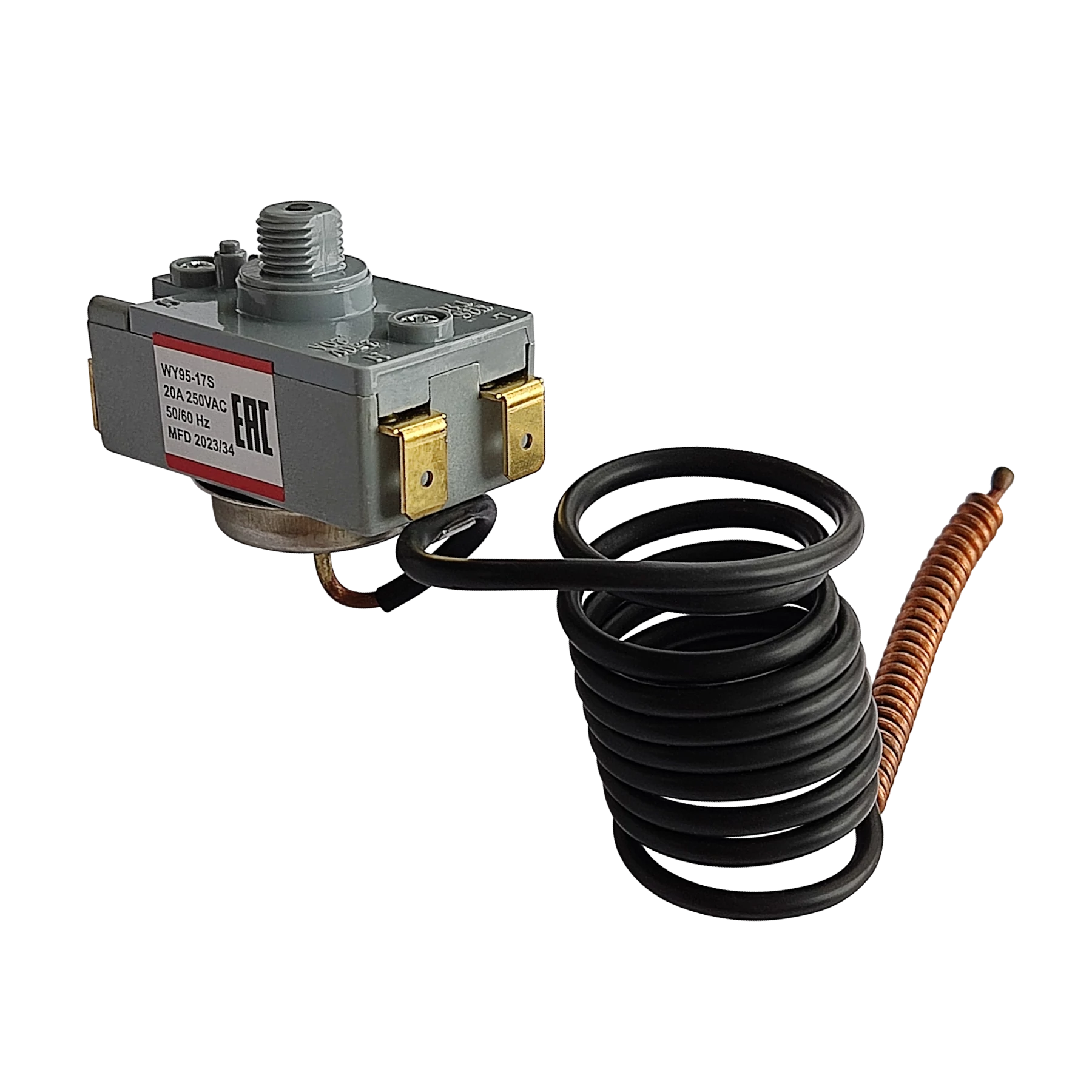 WY95-17S термостат для водонагревателя двухполюсный защитный - предназначен для защиты водонагревателей, бойлеров, стиральных машин и т.п. от перегрева и закипания воды. Защита срабатывает при 95 градусах, происходит размыкание внутренних контактов и отключение нагревателей соединенных с этим термостатом. Для возврата в исходное состояние необходимо нажать на кнопку сброса.