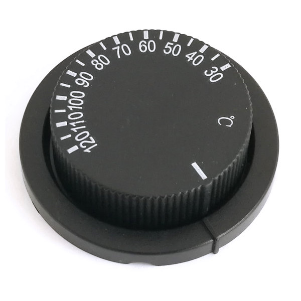 Пластиковая рукоятка со шкалой 30°C…120°C и декоративной накладкой выполнена из материала PA66. Предназначена для установки на ось капиллярных термостатов с диапазоном регулировки температуры от 30 до 120°C.