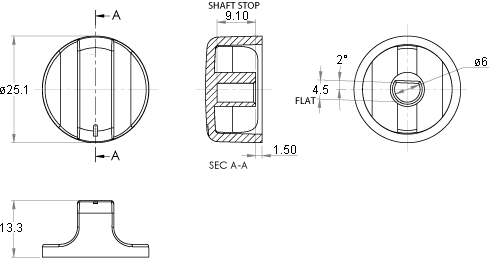 Пластиковая рукоятка с текстурной обработкой. Выполнена из материала ABS. Предназначена для установки на ось поворотных (роторных, галетных) переключателей или на ось регулируемых термостатов.