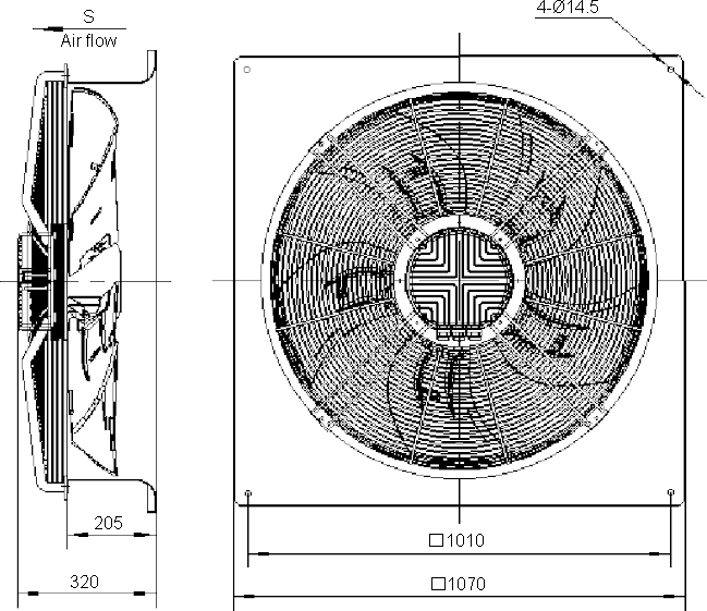 Лопасти вентилятора выполнены из алюминия, что позволяет использовать его на объектах с повышенными требованиями к пожаробезопасности.